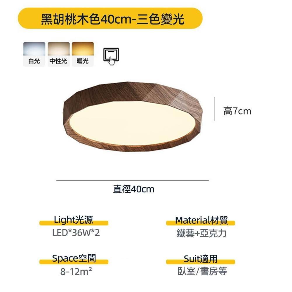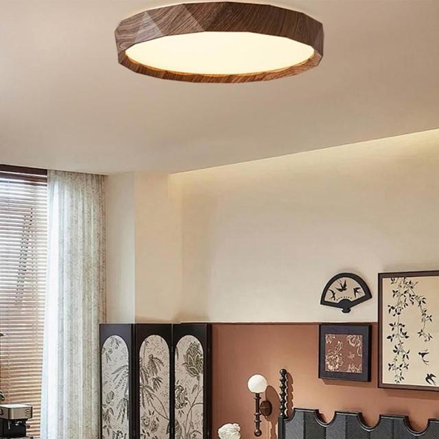 XINGMU 興沐(限量特惠)吸頂燈 臥室吸頂燈 胡桃木紋色吸頂燈 日式led護眼臥室燈 復古侘寂中古風餐廳書房間燈 無極調光