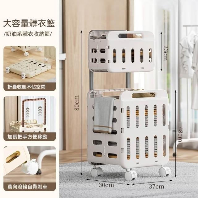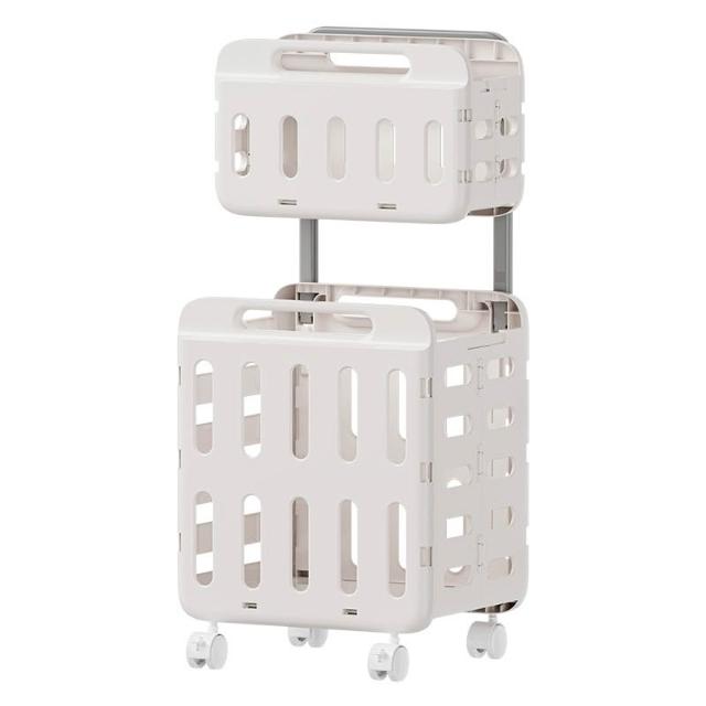 MOOG 沐格家用折疊洗衣籃 可移動多層收納筐 浴室落地髒衣篓 衣物分類置物架