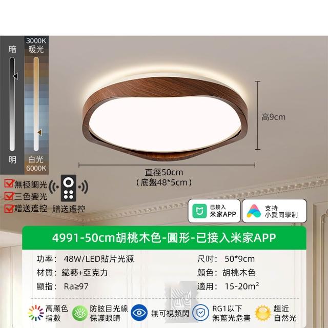 XINGMU 興沐吸頂燈 黑胡桃木吸頂燈 臥室陽台走廊燈 中古風全光譜護眼燈 現代簡約圓形原木燈具 家用照明