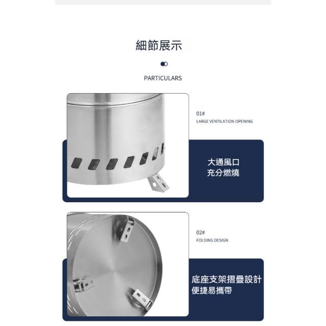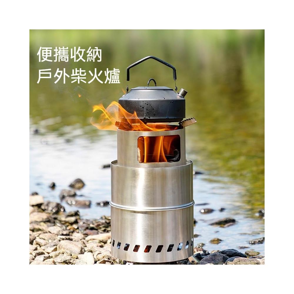 XINGMU 興沐304不鏽鋼 柴火爐 二次燃燒 便攜焚火台/火箭爐 露營野炊 登山煮水煮咖啡 摺疊腳收納袋 戶外爐具