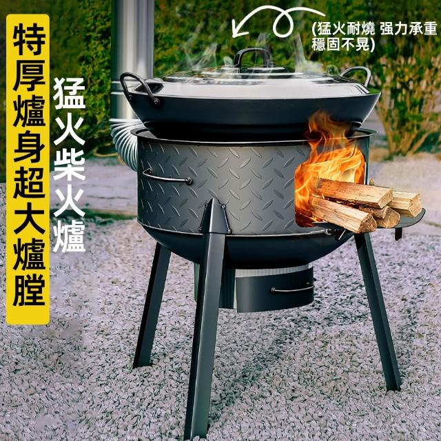 XINGMU 興沐花紋鋼柴火爐/含煙囪 露營野炊烤肉爐 戶外煮飯燒水 便攜可拆腳 多鍋圈支援|露營必備/野炊/烤肉