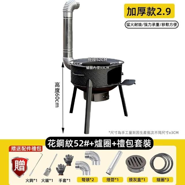 XINGMU 興沐花紋鋼柴火爐/含煙囪 52cm露營野炊烤肉爐 戶外煮飯燒水 便攜可拆腳 多鍋圈支援|露營必備