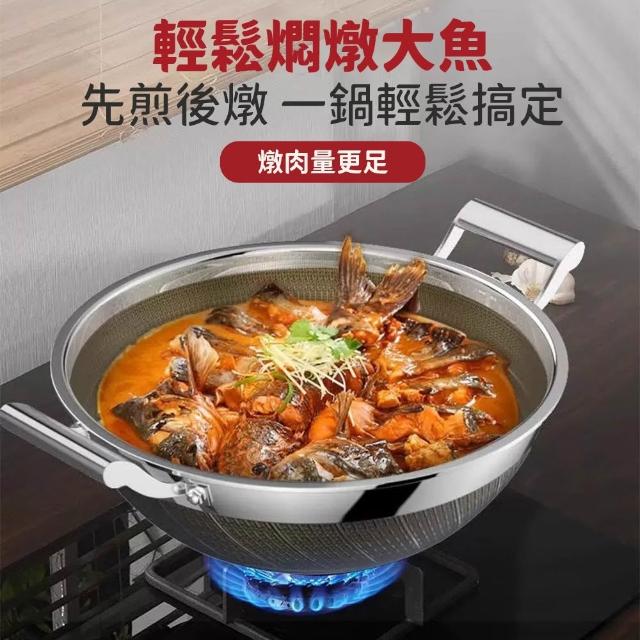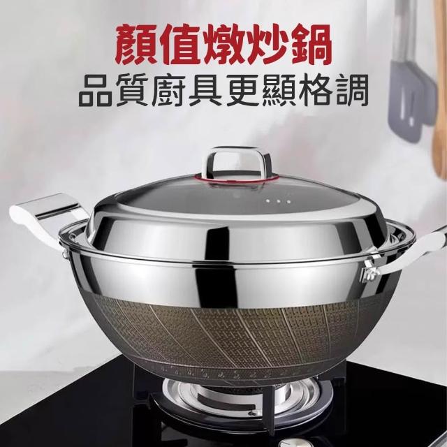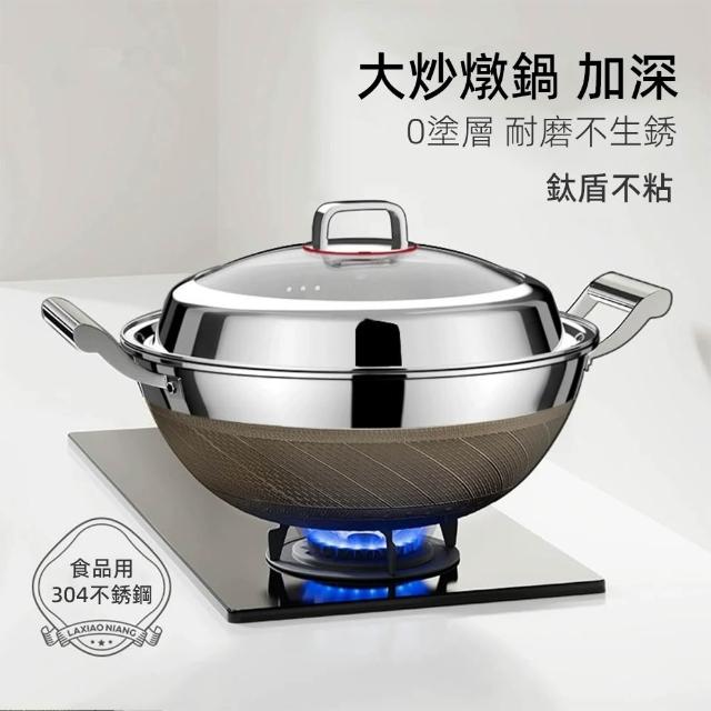不鏽鋼大容量料理鍋 家用炒鍋 加深鍋身 附蓋多功能炒菜鍋