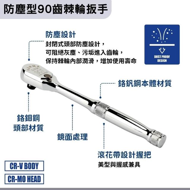 棘輪扳手|90齒|防塵型|滾花型|高扭力|鏡面電鍍|台灣製造