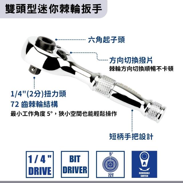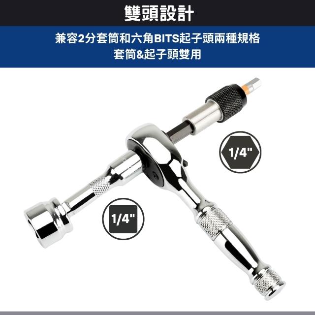2合1雙頭棘輪扳手 1/4吋 72齒|套筒+BITS起子頭適用|2in1 棘輪柄|單車扳手 自行車維修工具 公路車工具
