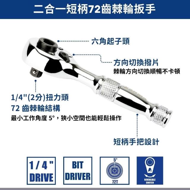 30件組雙頭迷你棘輪套筒工具組|1/4"(兩分) 短柄棘輪扳手|25mm起子頭+六角極短套筒全配|萬用維修工具盒|台灣製