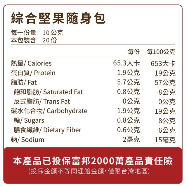 成就希望工程三種綜合無調味堅果隨身包(10gx20入/袋 ; 低溫烘焙/無添加調味/無加糖/全素/營養點心/健康零食/淳粹堅果)