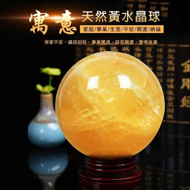 EARISE 雅蘭仕天然水晶球 開光 黃水晶球 轉運球 原石打磨拋光黃色水晶(招財化煞 化解 客廳擺件 擺件 轉運 鎮宅) 送底座