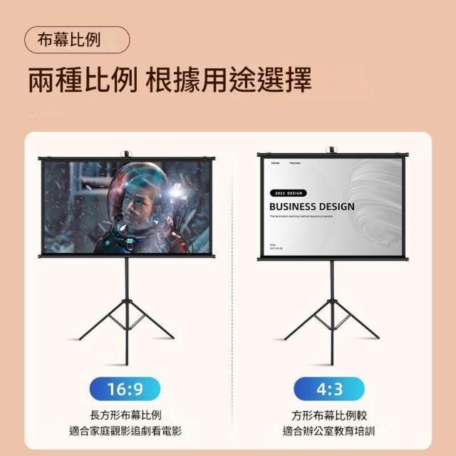 EARISE 雅蘭仕移動式影院級幕布 高清投影幕布 高畫質防反光防光暈 5層加厚幕布 可戶外室內用可推行 可伸縮高度 多材質/尺寸可選