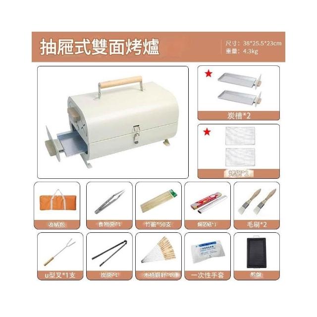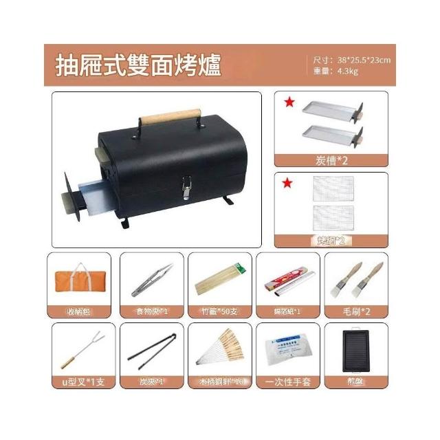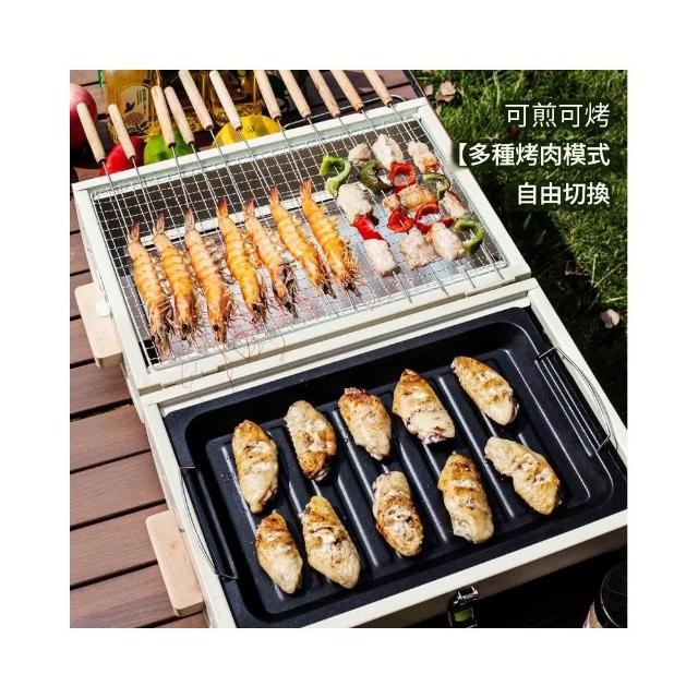 EARISE 雅蘭仕戶外無煙燒烤爐 包形可展開雙面煎烤兩用 通風抽屜式碳槽 戶外野炊/露營/旅遊圍爐手提便攜式 送燒烤工具全套
