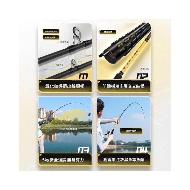 EARISE 雅蘭仕XH雷強路亞竿 CA小黃竿 超硬超輕調 碳纖維90%+玻璃纖維混合 黑鯛/路亞專用 高靈敏遠投竿