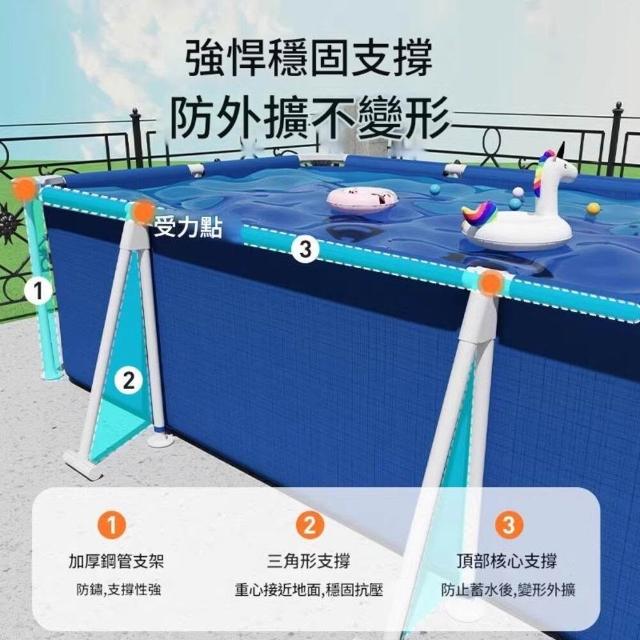 EARISE 雅蘭仕框架式泳池 支架式免工具速搭 免充氣 加厚三層網薄壁厚 防曬材質 長方形室內外可用 易收納