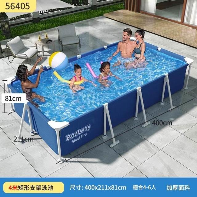 EARISE 雅蘭仕框架式泳池 支架式免工具速搭 免充氣 加厚三層網薄壁厚 防曬材質 長方形室內外可用 易收納