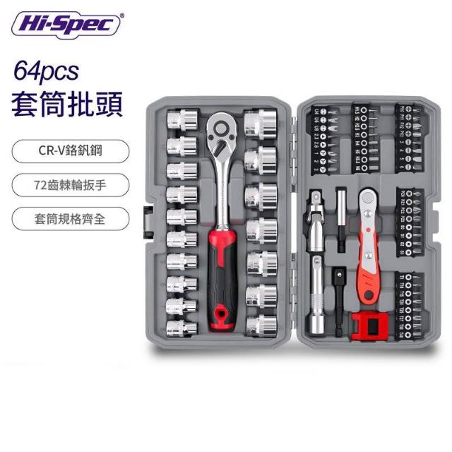EARISE 雅蘭仕專業汽車/機車維修64件套 3/8中飛棘輪扳手套筒組 4-22mm全規格套筒+40合1批頭 附萬向節/消磁器