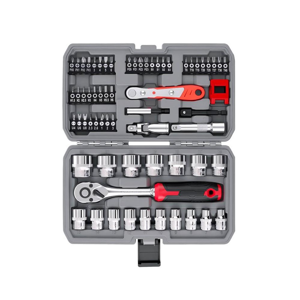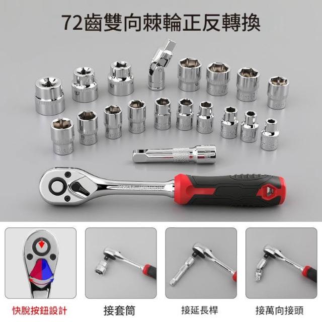 EARISE 雅蘭仕專業汽車/機車維修64件套 3/8中飛棘輪扳手套筒組 4-22mm全規格套筒+40合1批頭 附萬向節/消磁器