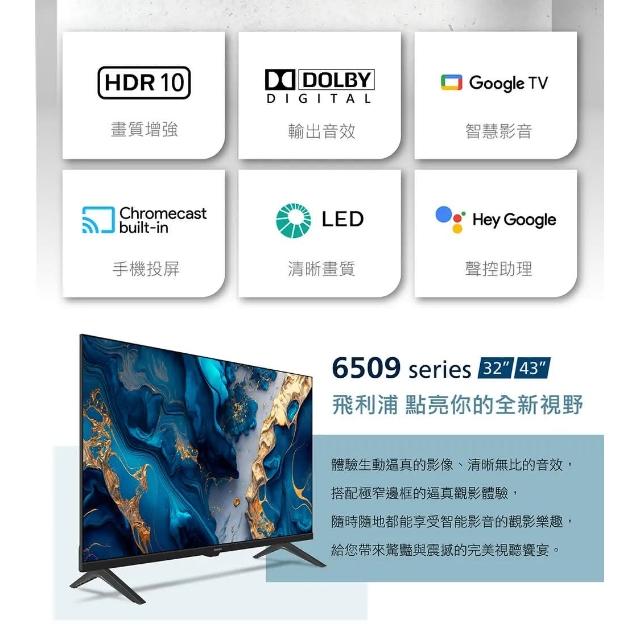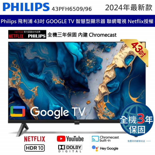 Philips 飛利浦 43吋 GOOGLE TV 智慧型顯示器 聯網電視 Netflix授權 43PFH6509