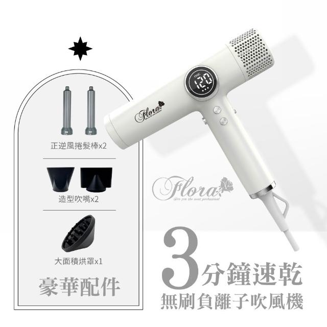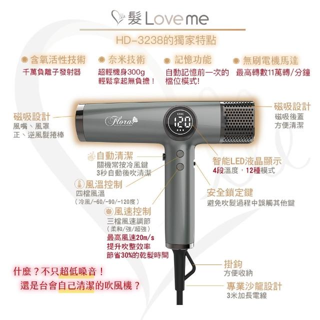 FLORAL 芙蘿菈芙蘿拉 FLORA HD-3238 負離子無刷吹風機 三代沙龍級 速乾護髮 輕量機身 附磁吸捲髮棒 自動清潔 四檔風溫