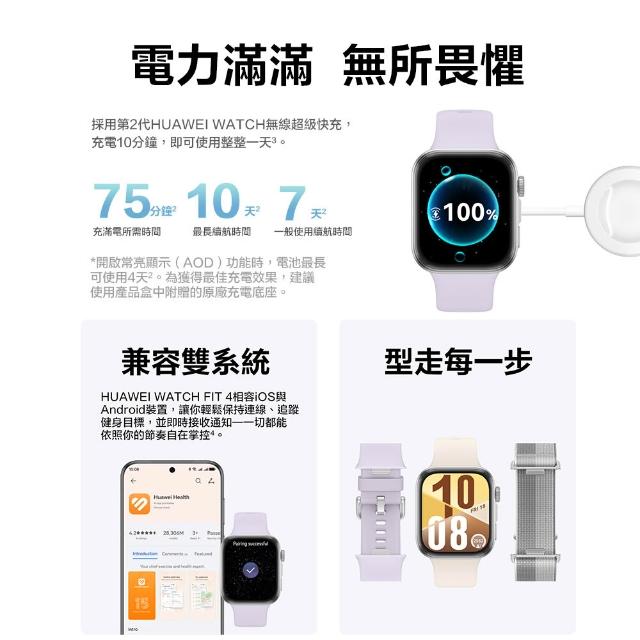 HUAWEI 華為HUAWEI 華為 Watch Fit 4智慧手錶 血氧心率監測 AMOLED 運動手錶 長續航 雙頻GPS定位 贈好禮
