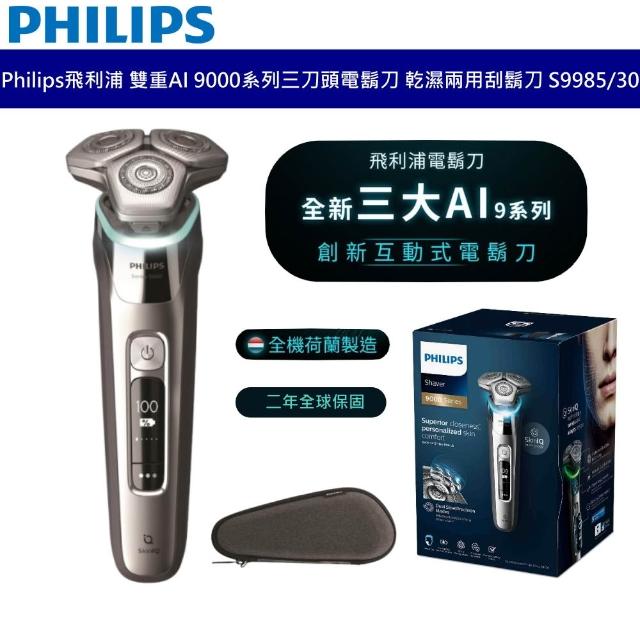 Philips 飛利浦Philips 飛利浦 雙重AI 9000系列 三刀頭電鬍刀 乾溼刮鬍刀 兩用刮鬍刀 充電刮鬍刀 S9985 二年保固