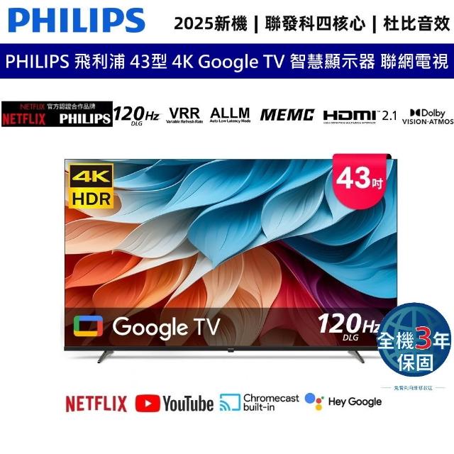 Philips 飛利浦PHILIPS 飛利浦 43型 43吋 4K Google TV 智慧顯示器 聯網電視 43PUH7650
