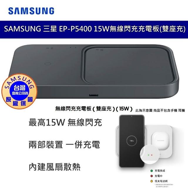 Samsung 三星三星 SAMSUNG 原廠 15W無線閃充雙充電板組 EP-P5400 (附25W充電器+雙Type C線) 台灣公司貨