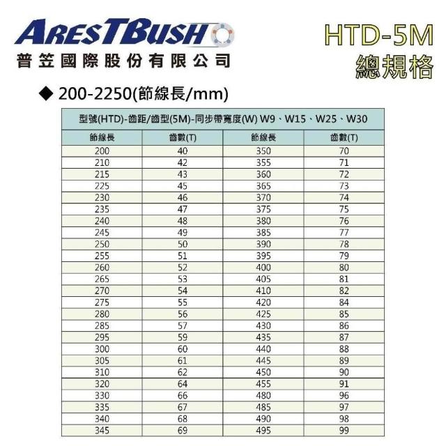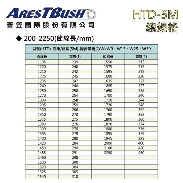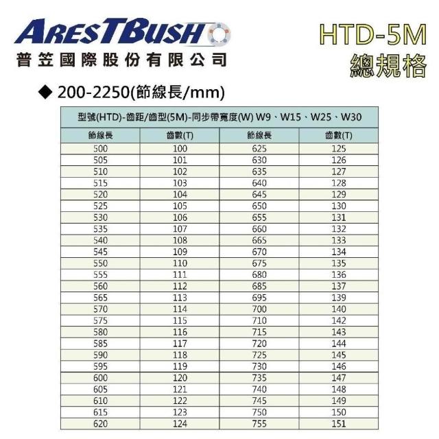 同步時規皮帶 Timing-belt HTD-5M-200~500mm-W9
