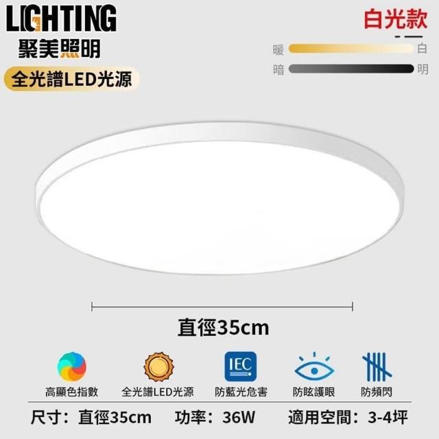 聚美照明防潮吸頂燈 2cm超薄三防吸頂燈 三色變光 走廊燈 陽檯燈 浴室燈 廚房燈(防潮/防霉/防蚊/防蟲/防霧)