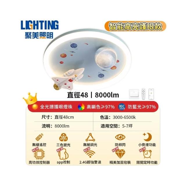 聚美照明吸頂燈 防藍光兒童房燈 led兒童卡通燈 3-5坪適用 遙控調光兒童燈 卧室房間吸頂燈