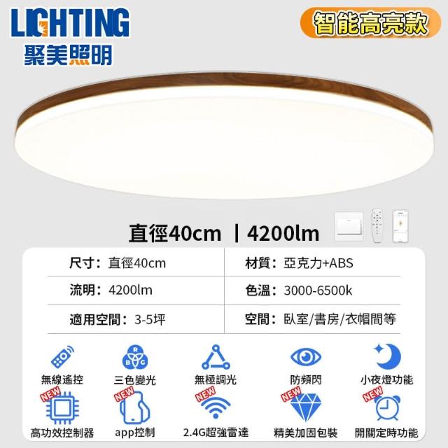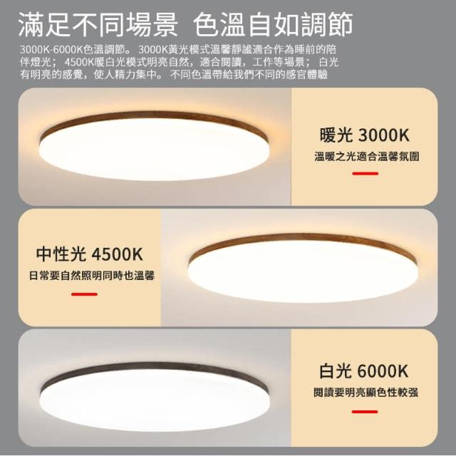 聚美照明led吸頂燈 全光譜護眼客廳燈 臥室燈 app三色無極調光 胡桃木簡約電燈 造型燈 房間燈(台灣品牌 售後保障)