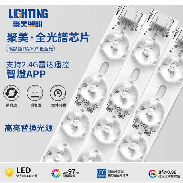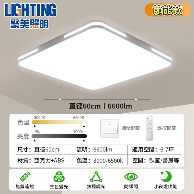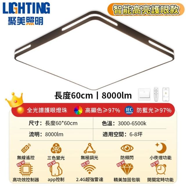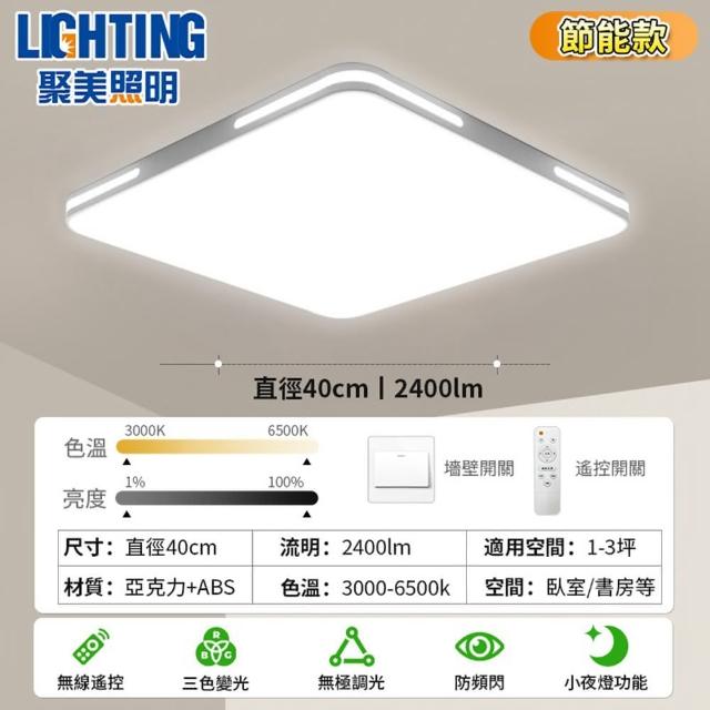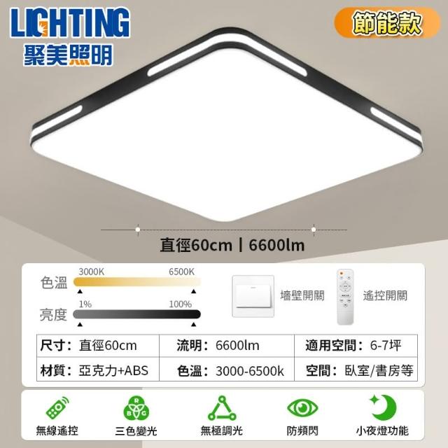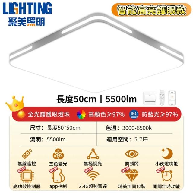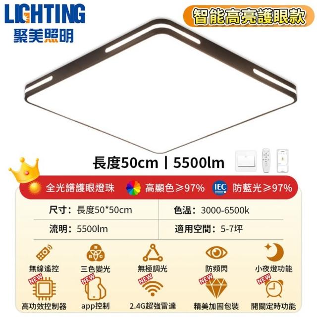 聚美照明吸頂燈 臥室燈 無極三色調光 app方形鏤空超薄簡約LED吸頂燈 110v現代簡約大氣燈飾 品牌保固 售後保障