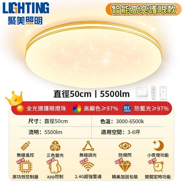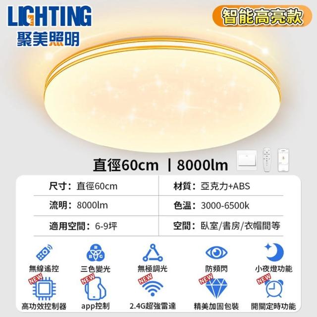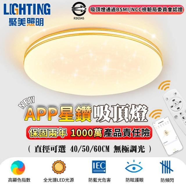 聚美照明吸頂燈 星空吸頂燈 5cm超薄吸頂燈 app防藍光護眼燈 附遙控無極調光 臥室led吸頂燈 品牌保障