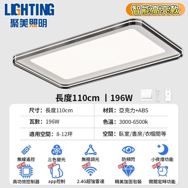聚美照明吸頂燈 高顯色防藍光護眼 北歐電鍍頂燈 三色無極調光 長方形客廳燈 房間燈 (台灣品牌 售後保障)