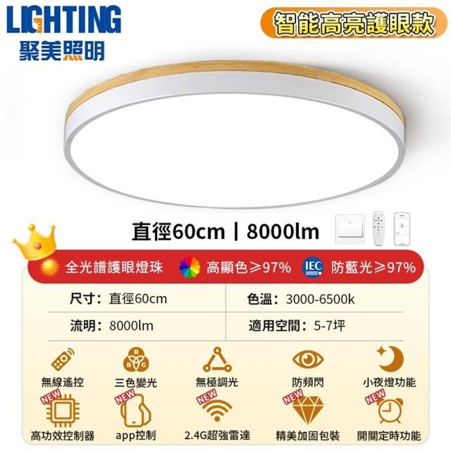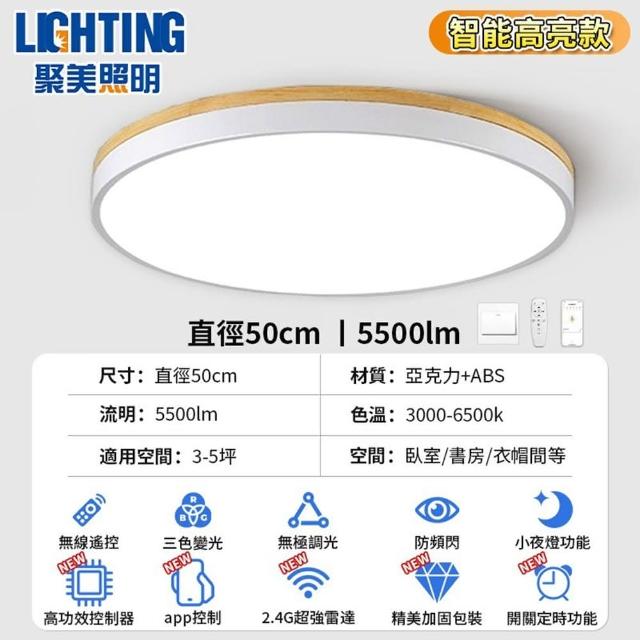 聚美照明吸頂燈 led臥室燈 馬卡龍原木吸頂燈 全光譜防藍光護眼燈 附遙控無極調光 馬克龍實木一體設計 品牌保障