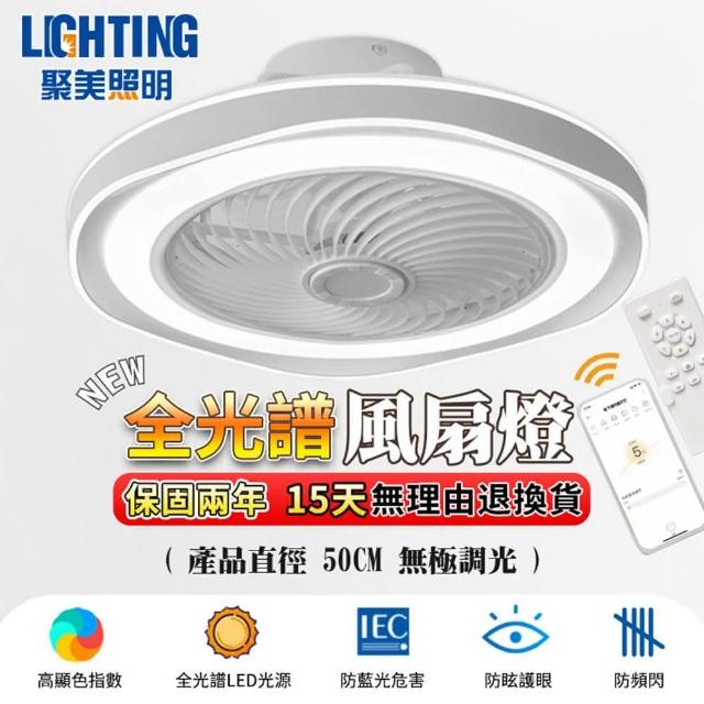 聚美照明風扇燈 隱形風扇燈 靜音循環扇 正反轉6檔風速 靜音低噪風扇燈 風扇燈吸頂燈飾(台灣品牌 售後保障)