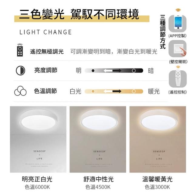 聚美照明吸頂燈 全光譜臥室燈 led圓形吸頂燈 防藍光app房間燈 調光吸頂燈飾(台灣品牌 售後保障)