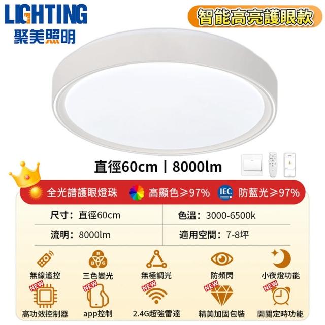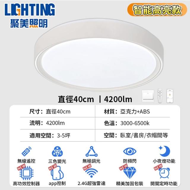 聚美照明吸頂燈 全光譜臥室燈 led圓形吸頂燈 防藍光app房間燈 調光吸頂燈飾(台灣品牌 售後保障)