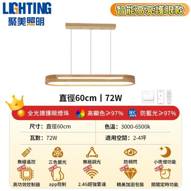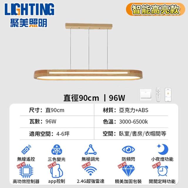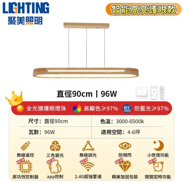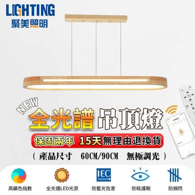 聚美照明吊燈 led吊燈 護眼led餐燈 實木餐廳燈 三色調光臥室燈創意北歐簡約燈具 台灣品牌 售後保障