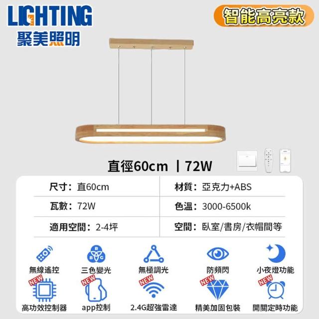 聚美照明吊燈 led吊燈 護眼led餐燈 實木餐廳燈 三色調光臥室燈創意北歐簡約燈具 台灣品牌 售後保障