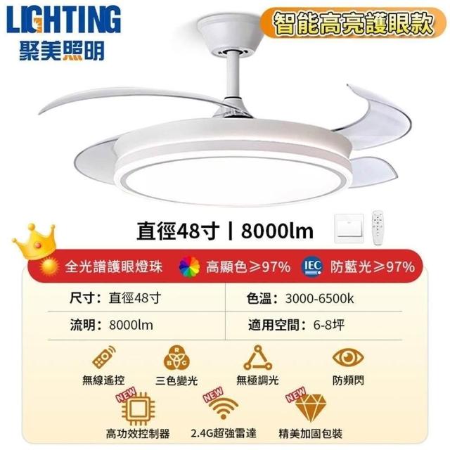 聚美照明吊扇燈 隱形風扇燈 全光譜吊扇燈 靜音變頻循環扇 吊頂風扇吸頂燈飾(變頻省電/6檔大風力)