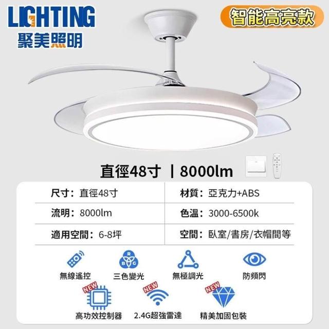 聚美照明吊扇燈 隱形風扇燈 全光譜吊扇燈 靜音變頻循環扇 吊頂風扇吸頂燈飾(變頻省電/6檔大風力)