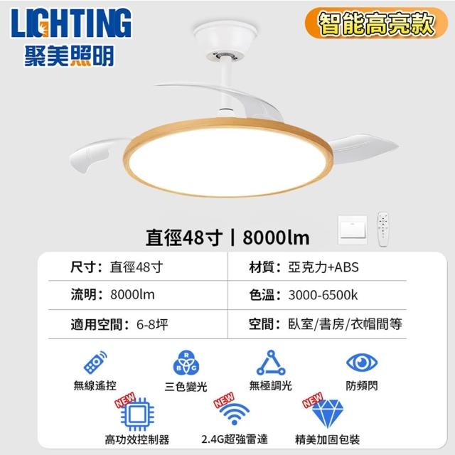 聚美照明吊扇燈 護眼超薄風扇燈 1.6CM超薄吊扇燈 木紋靜音變頻循環扇 全光譜護眼附遙控 餐廳客廳吊頂風扇燈飾(台灣品牌 售後保障)