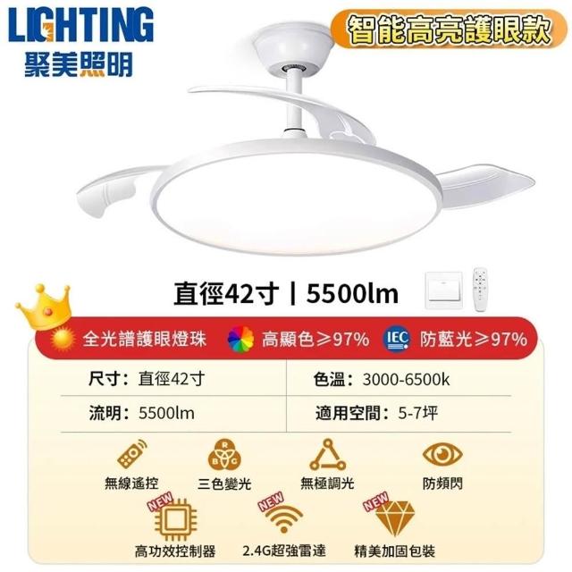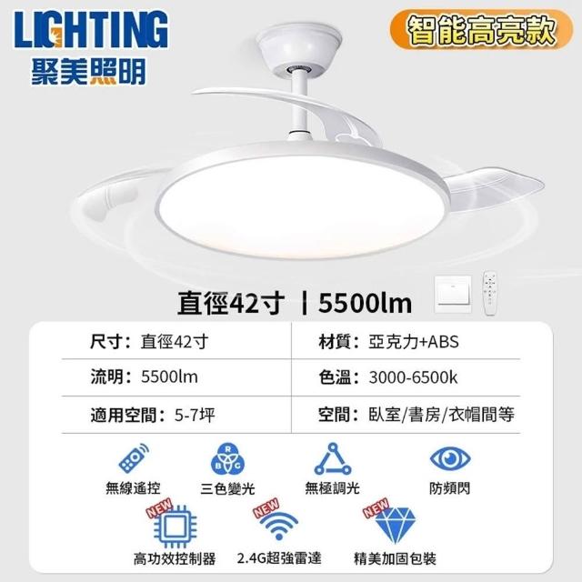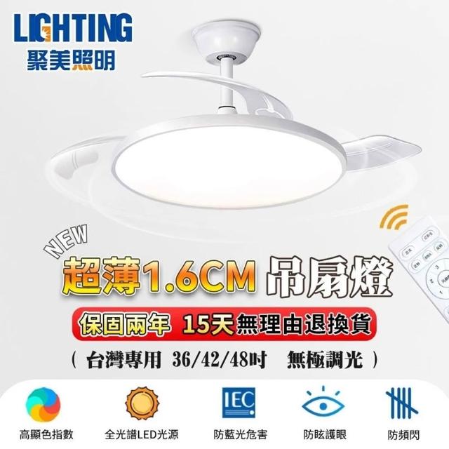 聚美照明吊扇燈 全光譜隱形風扇燈 1.6cm超薄靜音吊扇 三色變光附遙控 客廳餐廳風扇燈 極簡爆款燈飾(品牌保固 售後保障兩年)