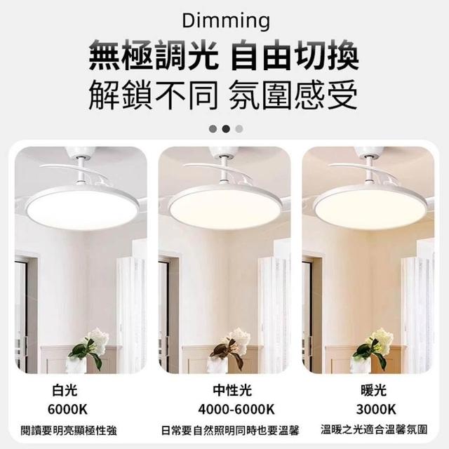 聚美照明吊扇燈 全光譜隱形風扇燈 1.6cm超薄靜音吊扇 三色變光附遙控 客廳餐廳風扇燈 極簡爆款燈飾(品牌保固 售後保障兩年)