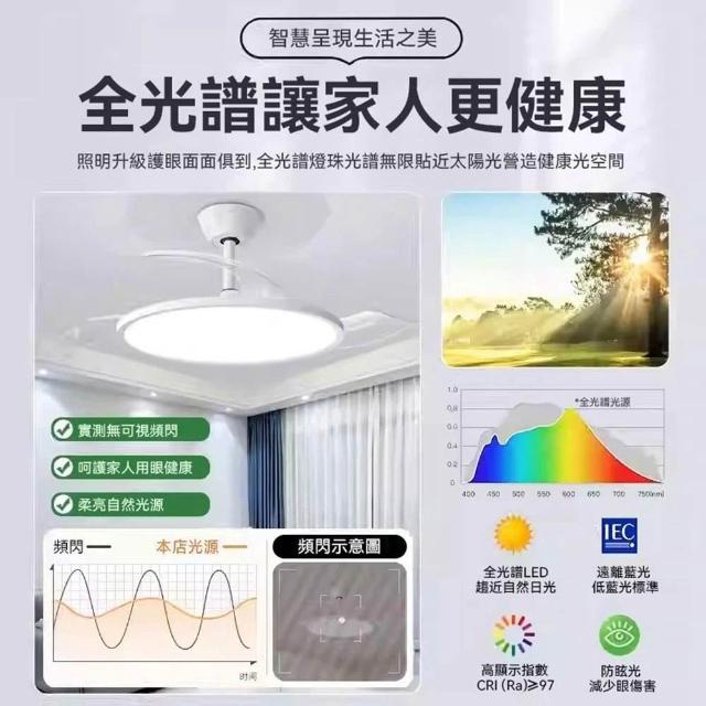 聚美照明吊扇燈 全光譜隱形風扇燈 1.6cm超薄靜音吊扇 三色變光附遙控 客廳餐廳風扇燈 極簡爆款燈飾(品牌保固 售後保障兩年)