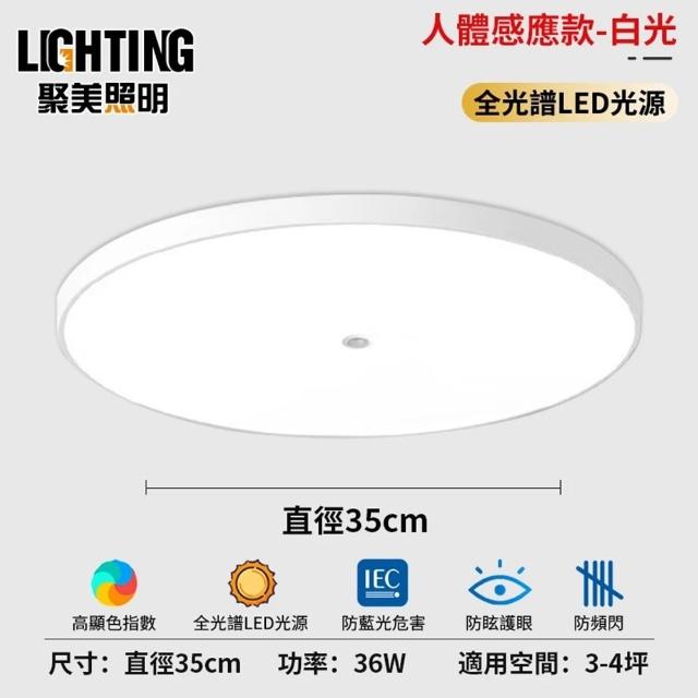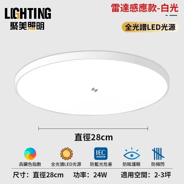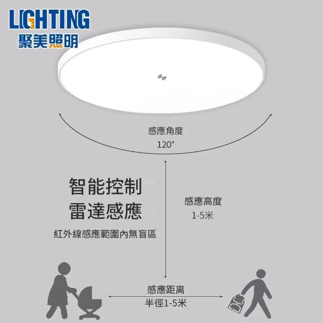 聚美照明吸頂燈 感應吸頂燈 2cm超薄三防燈 120°超強雷達感應走廊燈 人體感應陽檯浴室燈(防潮/防霉/防蚊/防蟲/防霧)