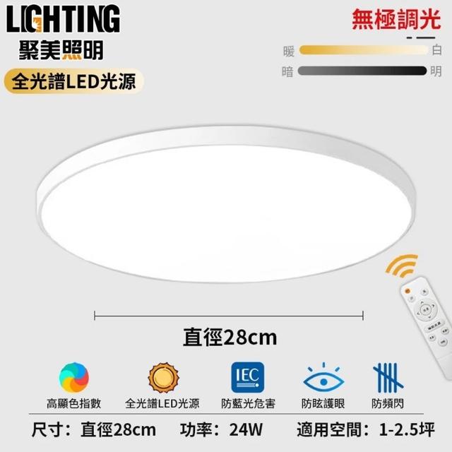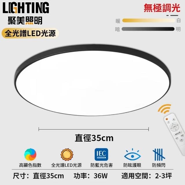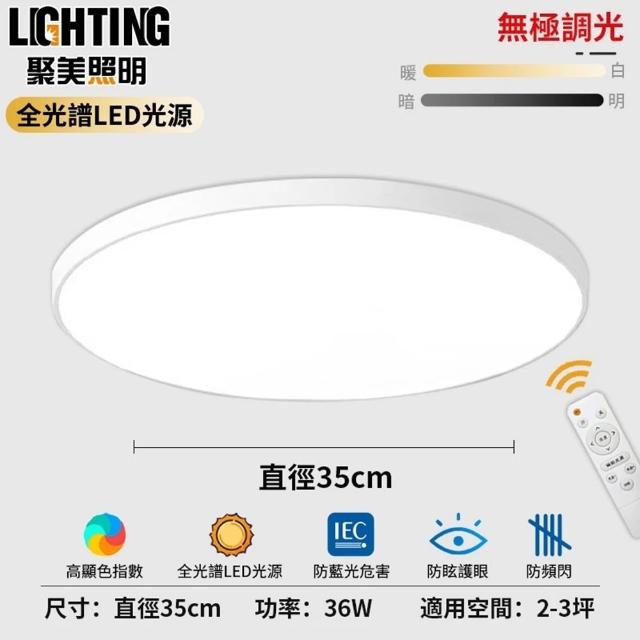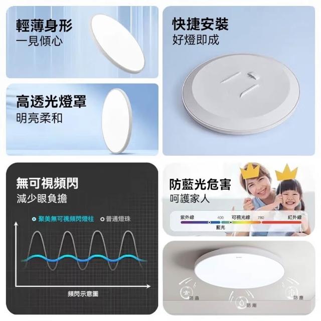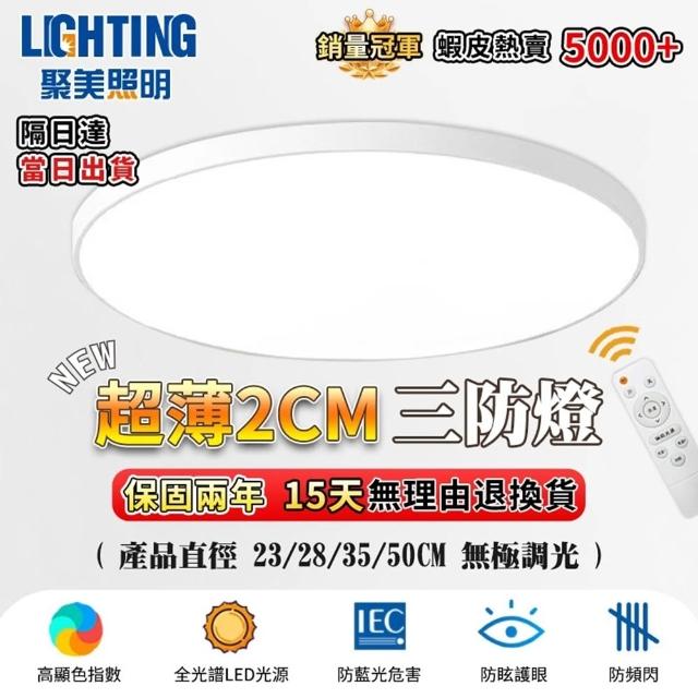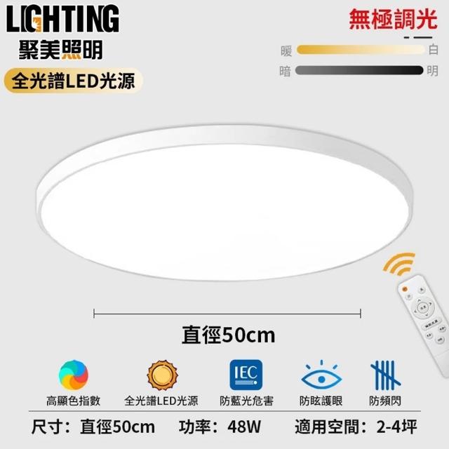聚美照明隔日達 防潮吸頂燈 超薄臥室燈 48w無極調光附遙控 走廊燈 陽檯燈 浴室燈(防潮/防霉/防蚊/防蟲/防霧)