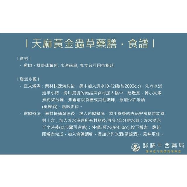 天麻 黃金蟲草 養生藥膳包(150G/包)【詠晴中西藥局】黃金蟲草雞湯包,滋補強身.提升防護,四季食補 冬令進補