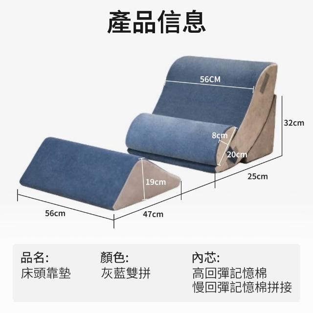 源森家居 多功能床頭靠墊 (灰藍拼色) 懶人靠枕 床靠護腰 床頭靠墊 趴睡枕可拆洗 半躺靠斜躺枕