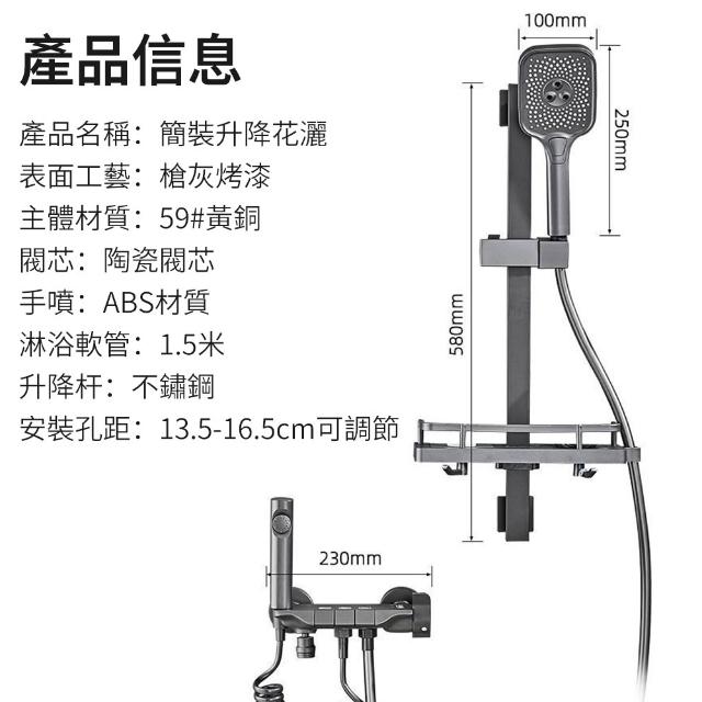 Felsted 菲仕德家用衛浴淋浴柱 淋浴花灑 花灑蓮蓬頭 分體式花灑套裝 三檔按鍵 帶置物架淋浴器