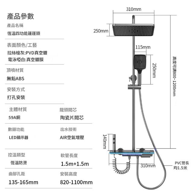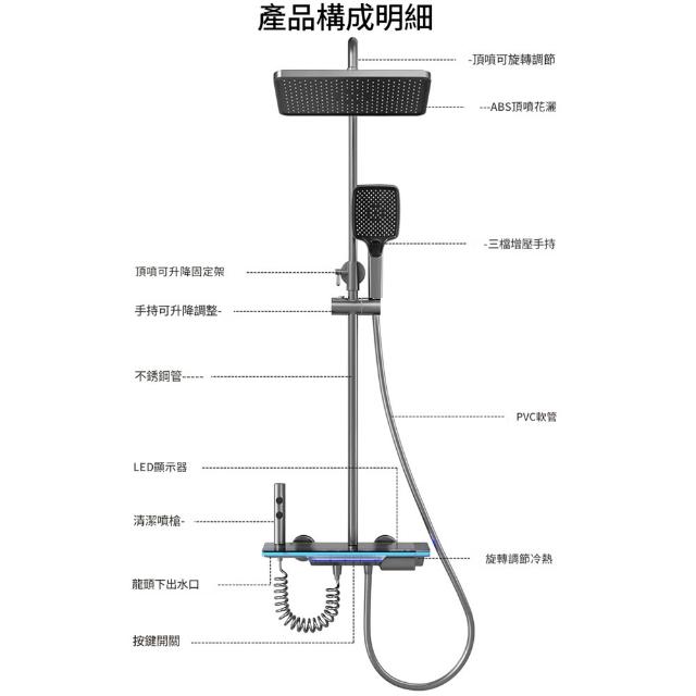 Felsted 菲仕德全銅數顯淋浴花灑組 雨淋頂噴 淋浴花灑 花灑蓮蓬頭組 增壓蓮蓬頭套裝 淋浴柱